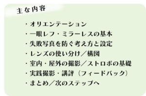 本講座は、そんな方のための実践型一眼レフ講座です。